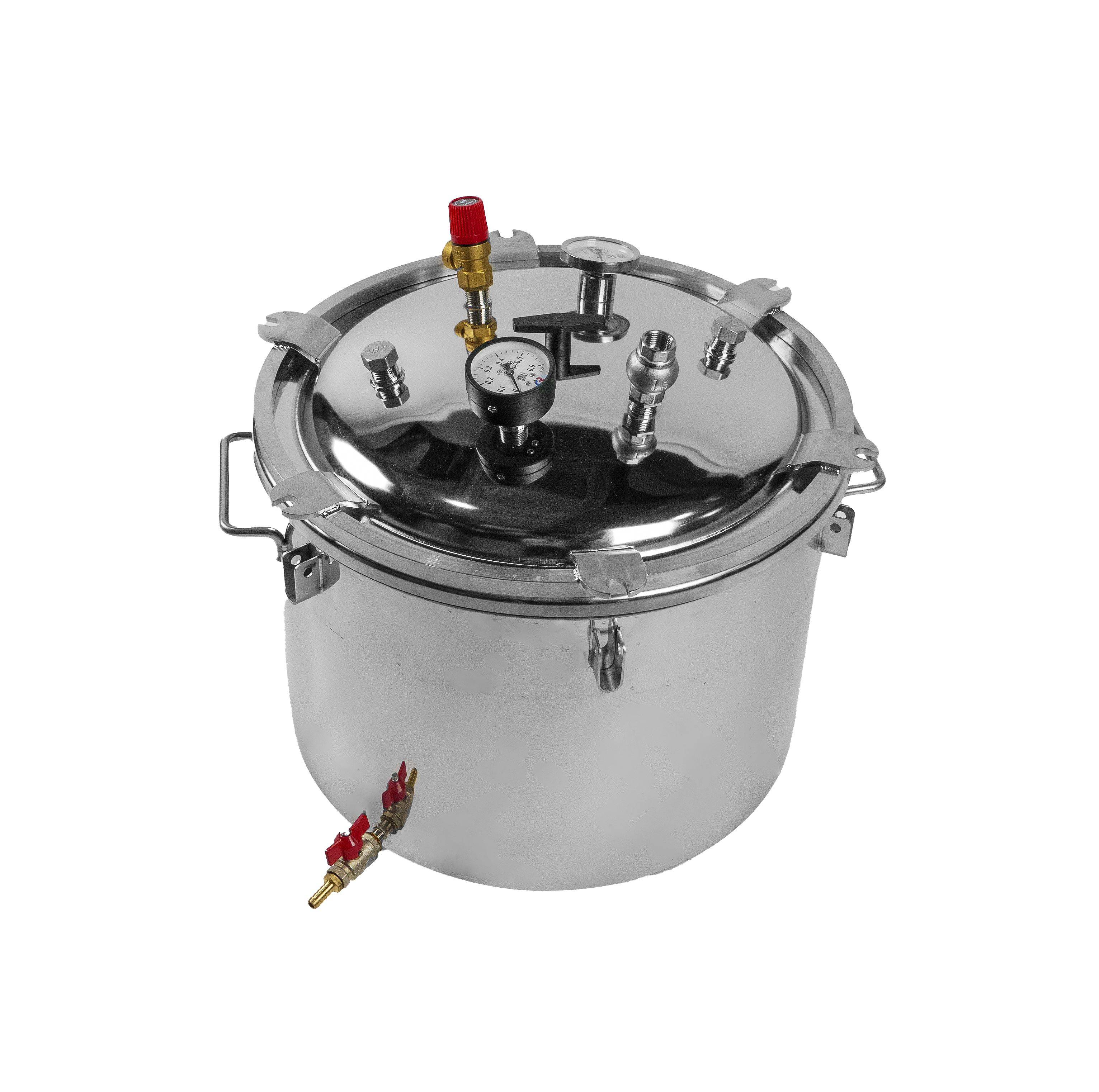 Газовый автоклав объёмом 46 л предназначен для безопасного консервирования овощей, мяса, рыбы и фруктов без консервантов. Изготовлен из пищевой нержавеющей стали AISI 304, устойчивой к коррозии и высоким температурам.