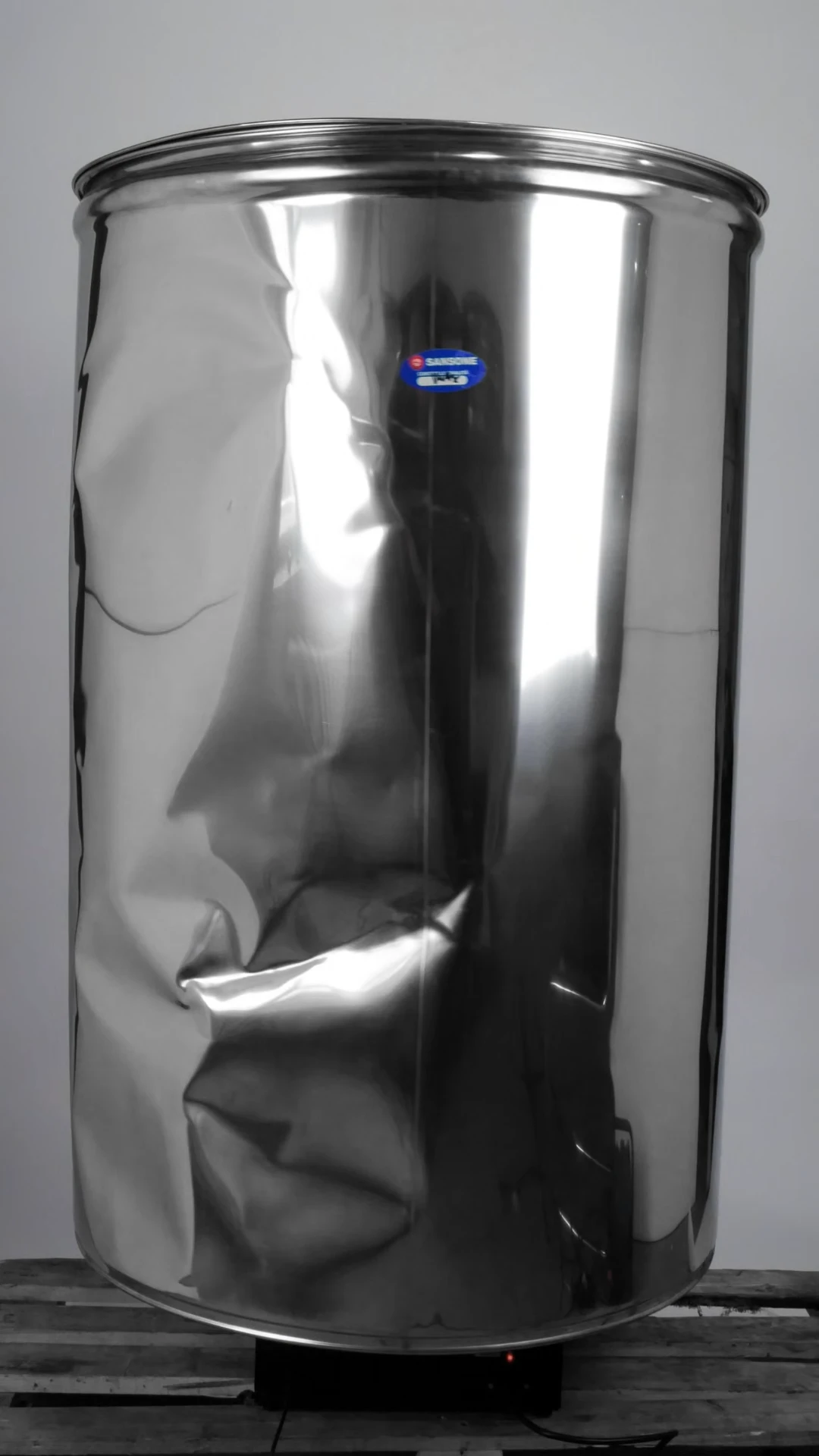 - Цилиндрическая часть емкости из полированной нержавеющей стали AISI 304 (толщиной 0,6-0,8 мм в зависимости от модели).